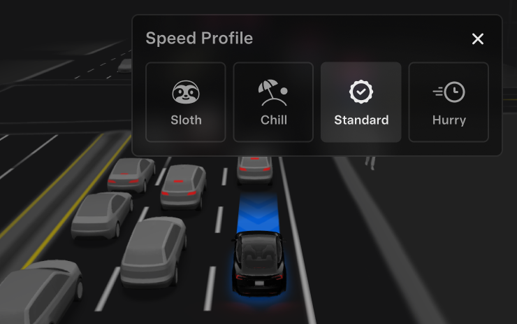 Systém FSD (pod dohledem) nyní určí vhodnou rychlost na základě kombinace profilu řidiče, rychlostního limitu a okolního provozu.